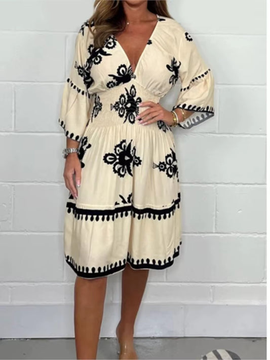 Elegant V-Neck Midi Dress – Effortless Grace for Every Occasion